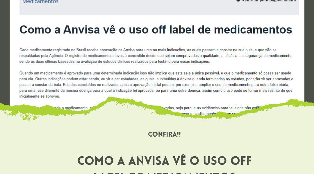 Cada medicamento registrado no Brasil recebe aprovação da Anvisa para uma ou mais indicações, as quais passam a constar na sua bula, e que são as respaldadas pela Agência. O registro de medicamentos novos é concedido desde que sejam comprovadas a qualidade, a eficácia e a segurança do medicamento, sendo as duas últimas baseadas na avaliação de estudos clínicos realizados