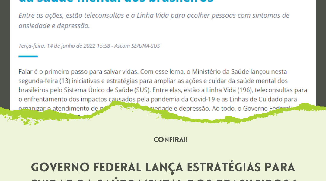 Governo Federal lança estratégias para cuidar da saúde mental dos brasileiros.