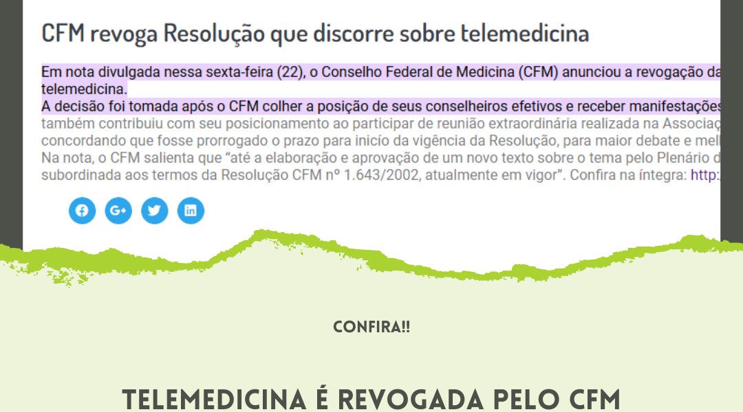 O Conselho Federal de Medicina (CFM) revoga a Resolução nº 2.227/2018 que normatiza o exercício da telemedicina em território brasileiro. De acordo com a nota emitida pela instituição, a decisão foi tomada devido a necessidade de tempo para examinar o “alto número de propostas encaminhadas pelos médicos brasileiros” que fizeram pontuações aos termos da Resolução. A questão é polêmica pois
