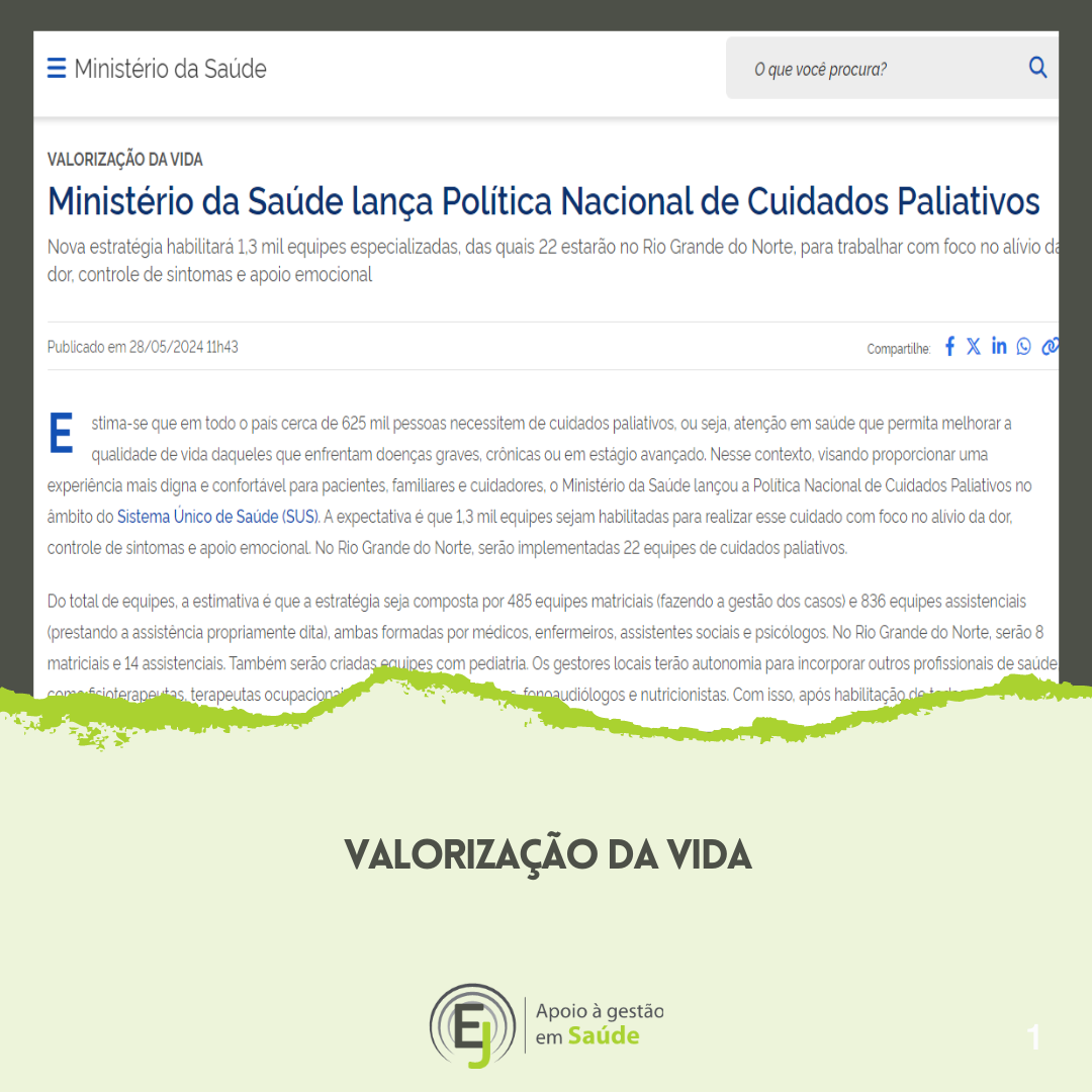 Nova estratégia habilitará 1,3 mil equipes especializadas, das quais 22 estarão no Rio Grande do Norte, para trabalhar com foco no alívio da dor, controle de sintomas e apoio emocional.