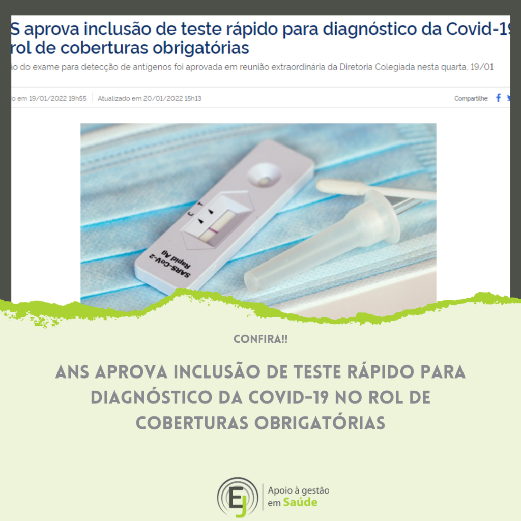 A diretoria colegiada da Agência Nacional de Saúde Suplementar (ANS) aprovou, no início da noite desta quarta-feira (19/01), em reunião extraordinária, a inclusão do exame teste rápido para detecção de antígeno SARS-CoV-2 (coronavírus Covid-19), no rol de coberturas obrigatórias para beneficiários de planos de saúde. O procedimento que irá constar do anexo I da Resolução Normativa nº 465/2021 foi encaminhado para publicação no Diário Oficial da União após a reunião e a previsão é que seja publicado na edição desta quinta-feira. A partir de então, a cobertura passa a ser imediata…
