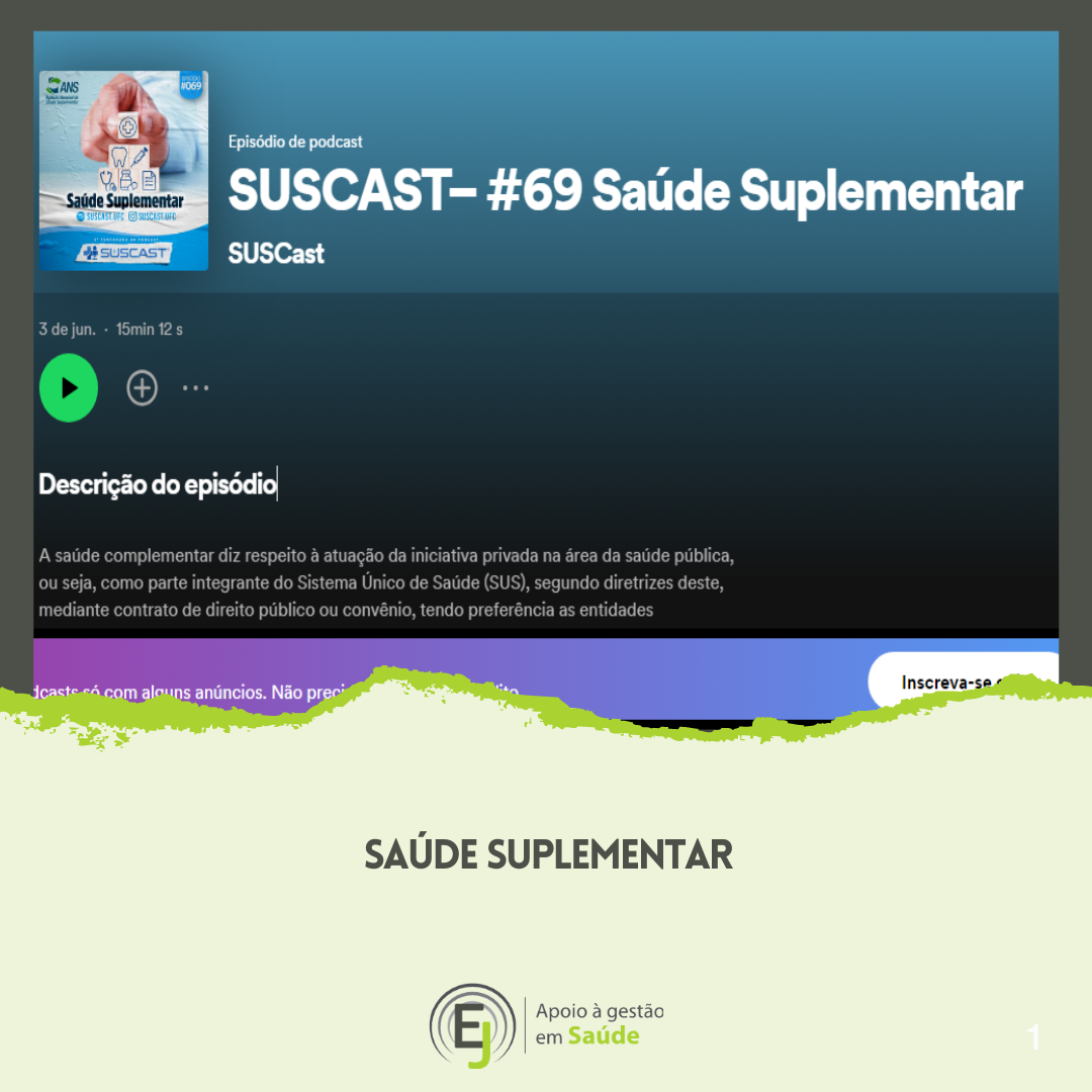 A saúde suplementar é o conjunto ações e serviços desenvolvidos por operadoras de planos e seguros privados de assistência médica à saúde e que não têm vínculo com o Sistema Único de Saúde (SUS) – a atividade está regulamentada pela lei federal nº 9.656/1998.