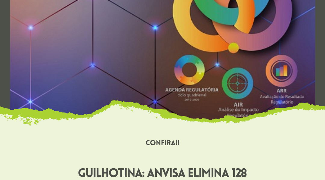 A Anvisa, por meio da Guilhotina Regulatória, está revendo algumas normativas consideradas obsoletas. A intenção é melhorar a qualidade regulatória da agência através da renovação de seu estoque de normativas. Leia mais.