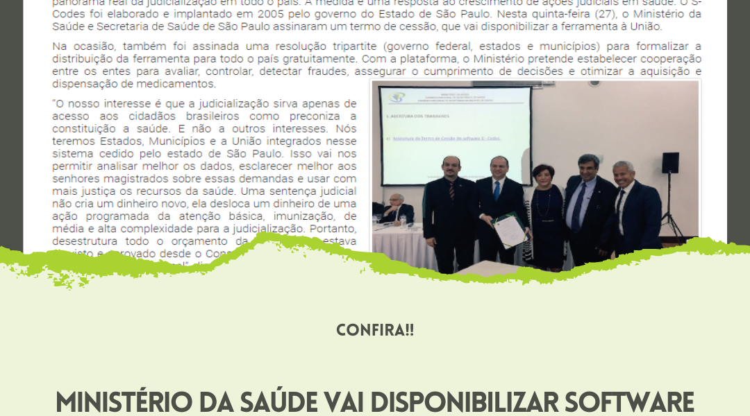 S-Codes é uma ferramenta web desenvolvida para auxiliar no gerenciamento de ações judiciais pleiteadas contra o Sistema Único de Saúde (SUS). O dispositivo possibilita conhecer detalhadamente as nuances que permeiam a judicialização na saúde. Essas informações ajudarão a amenizar o impacto negativo que esses processos exercem no orçamento e na execução das estratégias de políticas públicas. Leia mais aqui.